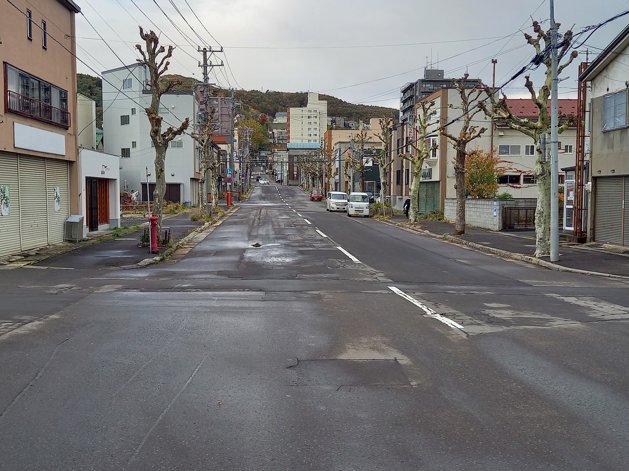 (竜宮通り)北海道開拓使の榎本武揚がつくった龍宮神社から海へと真っすぐに続く通り