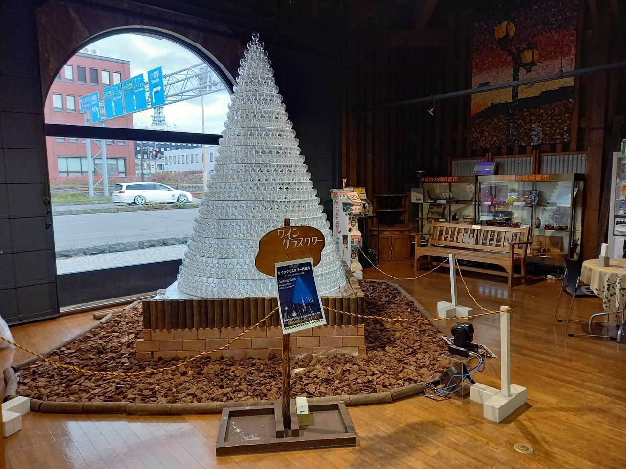 (運河プラザ)ワイングラスタワーが飾られていて、キラキラ輝いていました