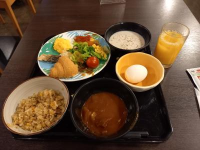 朝食は朝7時から2階和食処和ぎ(ねぎ)でいただけます。料金は和洋の食べ物食べ放題1280円で、3階フロント受付です。残念ながら中華はありません。