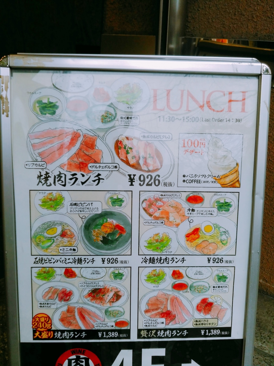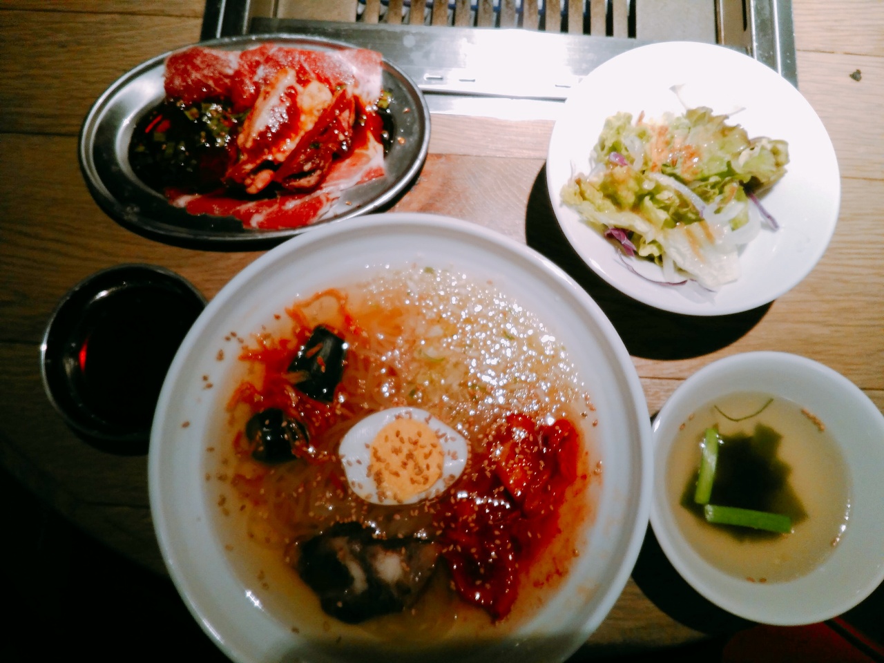 広瀬通りと一番町の交差点角、東映ビルの4階にあります。ランチは5種類で1000円と1500円です。焼肉と冷麺のランチ1000円(税込)は、肉が少しで残念でした。冷麺は麺が短く、市販の袋麺のようでした。キムチは甘めでした。ゴマの量が凄かったです。ランチでも、クレジットカード使えました。