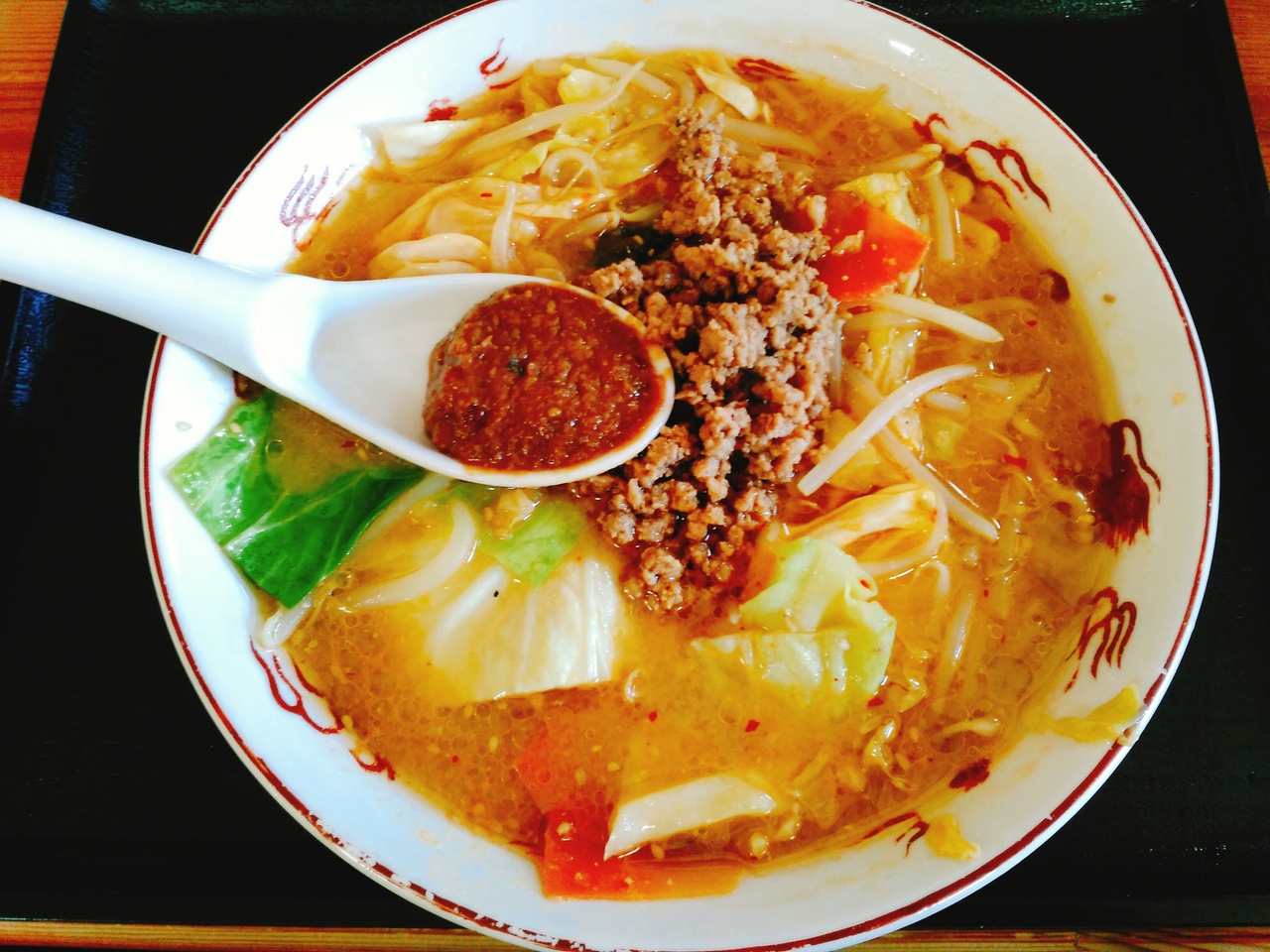 一番町、タワービルの西側にあります。お昼はほぼ満席でした。日替りランチは700円、今月のラーメンは780円です。日替りランチや今月のラーメンを頼む人が多かったです。今回は、今月のラーメン(麻婆ラーメン)にしました。麺は細麺、辛さは山椒が効いてピリ辛でした。