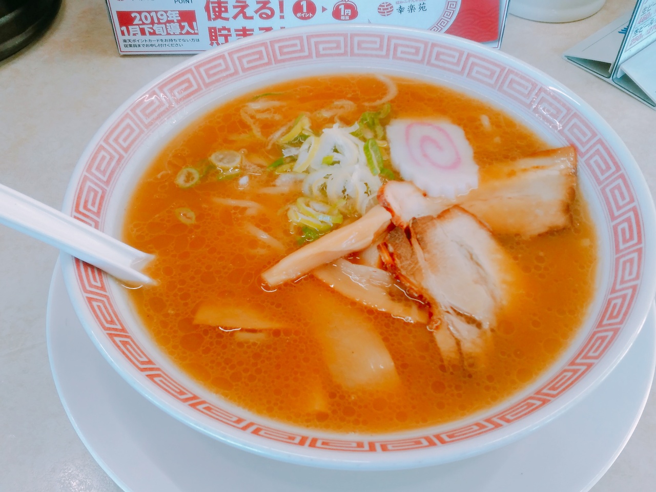 (幸楽苑柳生) 㐂伝ラーメンは、こくがありながらも飲みやすく、美味しかったです。