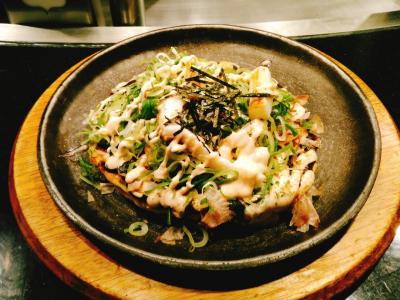 仙台三越の南側にあります。カウンター9席、テーブル22席位です。店内は店員の声が活気があり、アップテンポの曲が流れていて、にぎやかです。ランチ、800円はお好み焼き系、1000円以上は肉の鉄板焼き系です。今回は、オムソバランチ800円をいただきました。お好み焼きとかに使う玉子は、白石市にある竹鶏ファームの玉子使っていました。味は甘く、ソースとマヨネーズが足りませんでした。注文から30分かかったので、時間に余裕もった方が良いお店です。