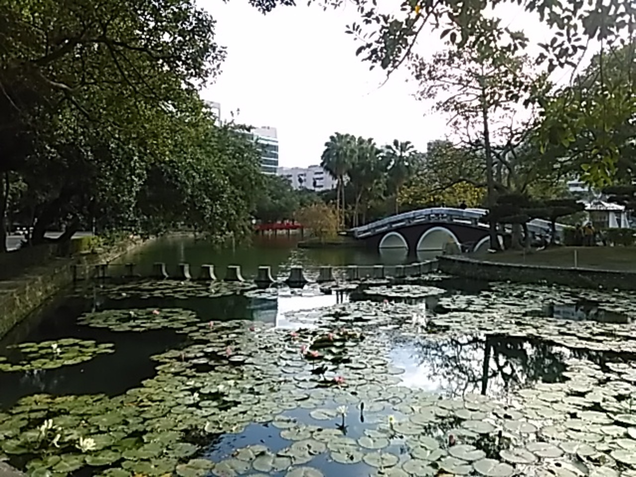 台中駅近くで、ちょっと足を伸ばせば行ける場所です。中山公園とも呼ばれているようです。園内には日本庭園もあり、池、灯篭や滝石組なども配置されています。池の上には、湖心亭という建物があります。北側の丘の上には、望月亭というベンチつきの休憩スペース所があります。街中でも、ゆったり出来る場所です。