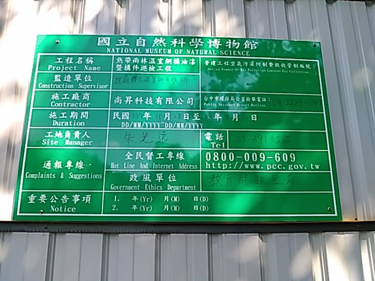 (台中植物園)今年の8月いっぱい迄、工事のようです。