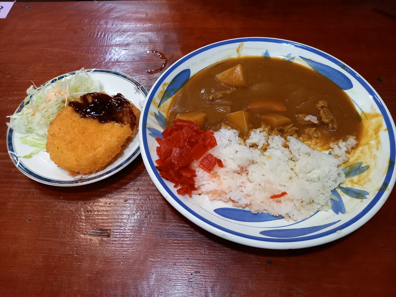 カレーにはコロッケが付きます。ソースだけでなくカレーコロッケにしても美味しいです。- 旅行時期