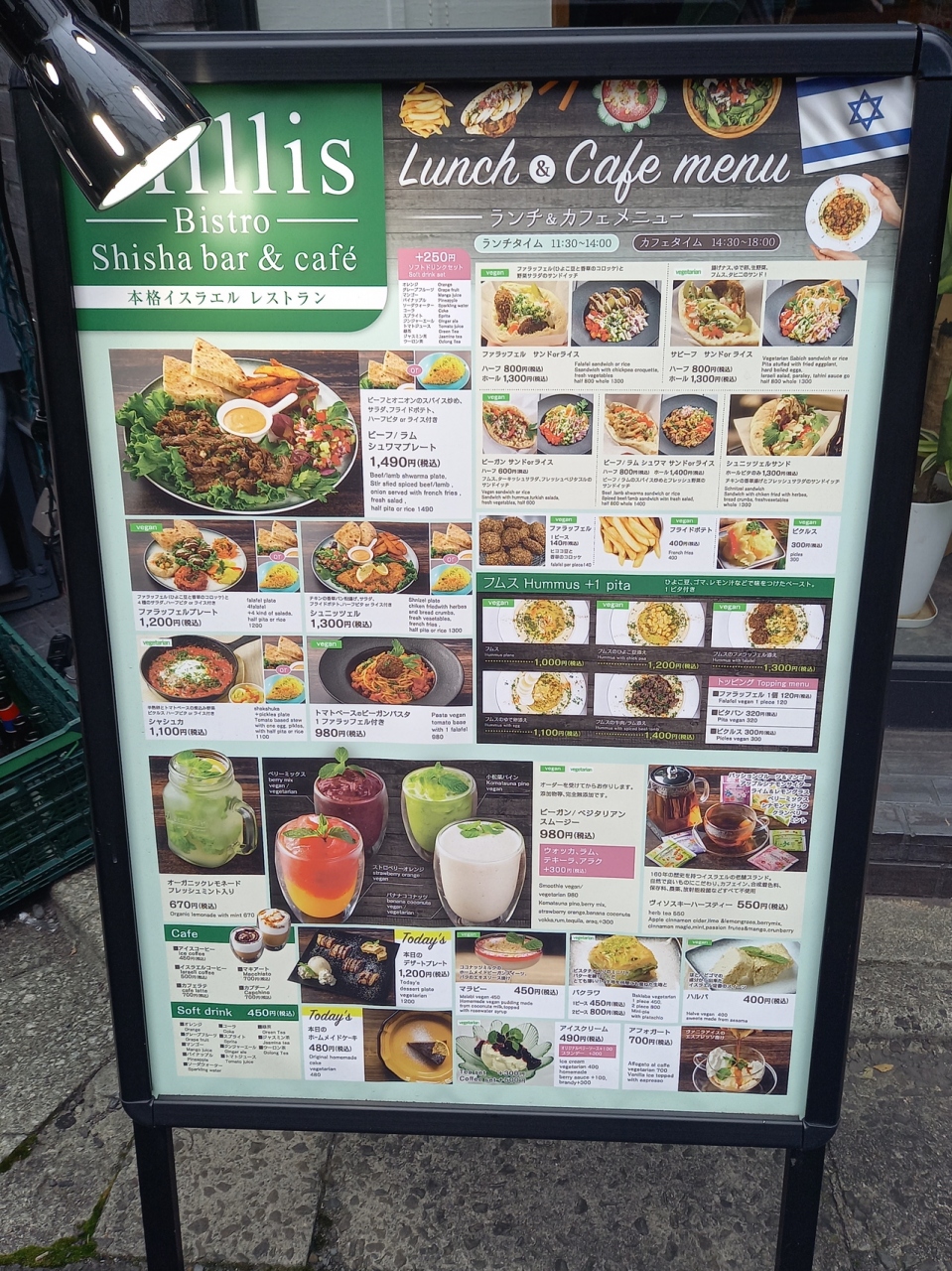 三越近くの稲荷小路にあります。イスラエル料理のお店で、店内の雰囲気、おしゃれです。