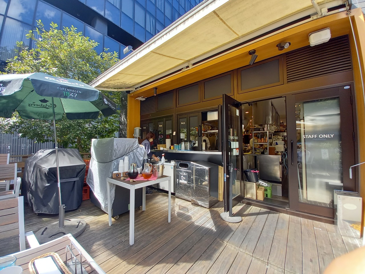 勾当台公園の敷地内にあります。店内の他に定禅寺通側のデッキでも食べることが出来ます。向は仙台三越です今回はデッキでいただきました。