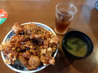 鶏から丼は大きい肉がゴロっと6個乗っかってました。食べごたえ充分でした。でも最後は飽きる感じでした。- 旅行時期