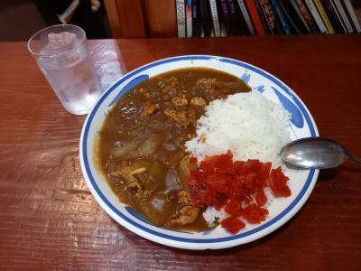 2杯目は普通のカレーをいただきました。具には、じゃがいも、人参、玉ねぎ、豚肉が入っててニンニクが効いてました。