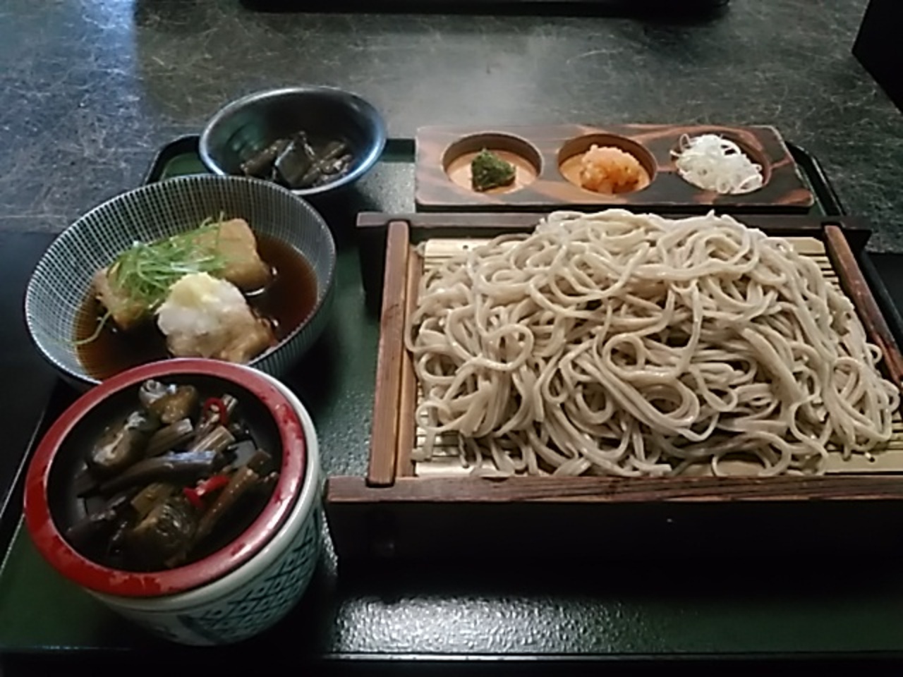 お店のお勧めは全そばセットのようです。十割そばにそばの揚げ豆腐、そばデザート等がついて1310円です。