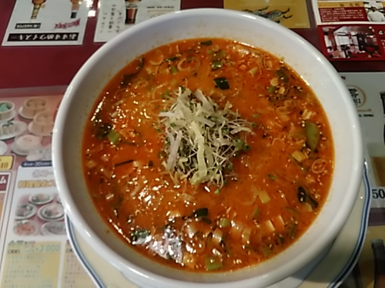白ごま担々麺は細麺で、あまり辛くありません。ネギの食感がいいアクセントになっていました。