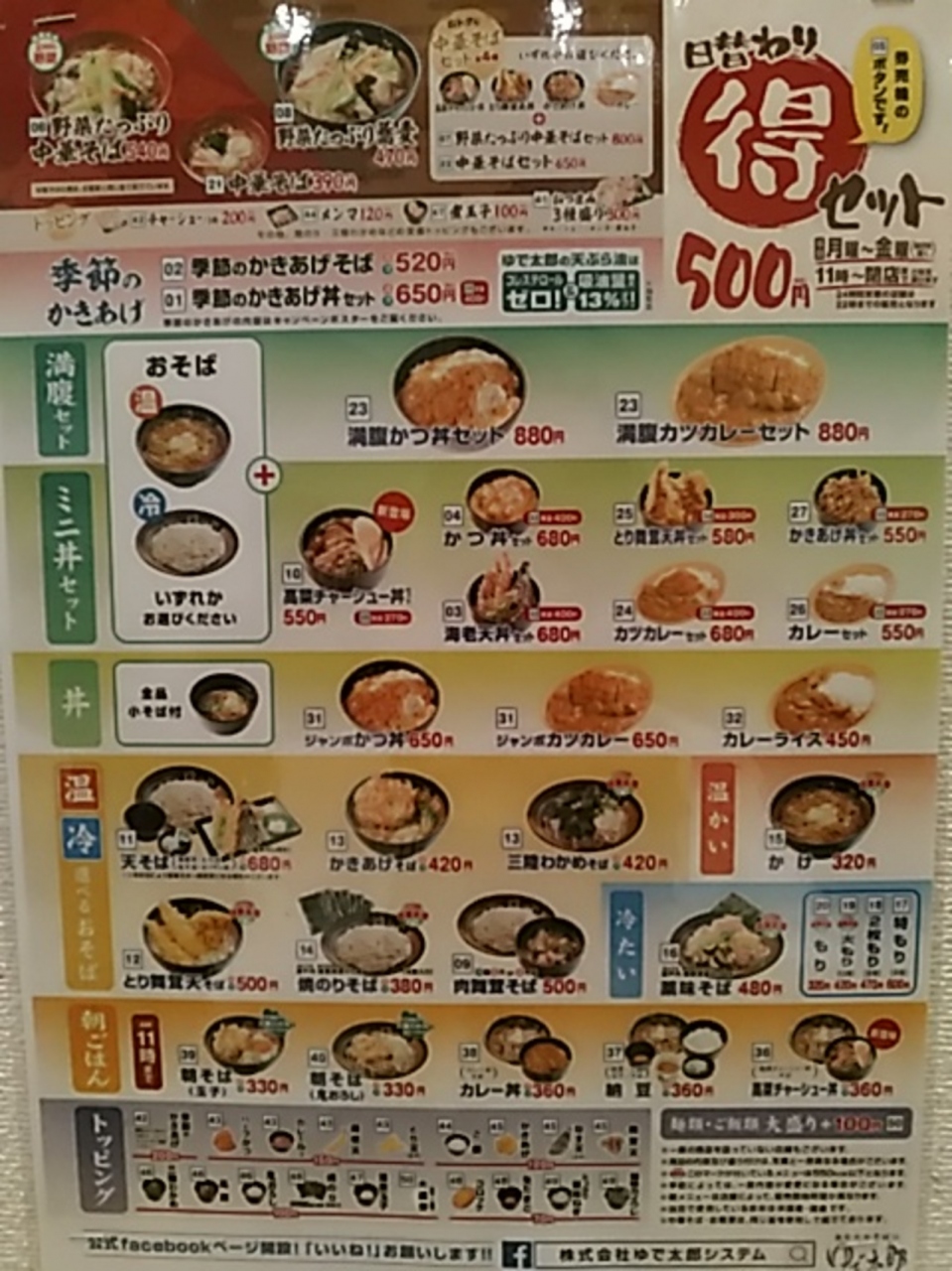 日替わり特セットは500円でそばと丼ものが食べられます。そばはかけか盛りを選べ、超細麺です。