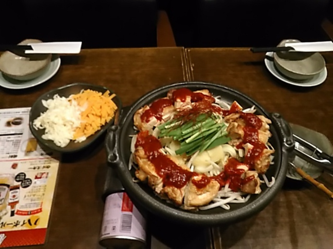 今回は、3000円のコースでお願いしました。枝豆、サラダ、チーズタッカルビ(〆はリゾット)、ピザ等が出てきました。しかも、三時間飲み放題です。