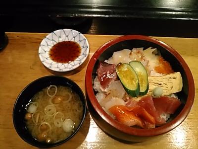 ランチはにぎりと海鮮丼の二種類で味噌汁がついて、750円です。それなりの味でした。