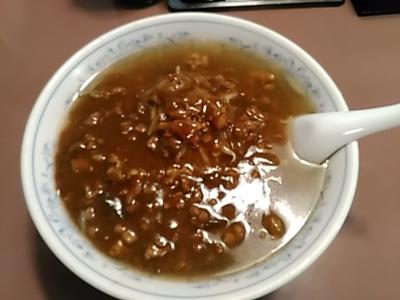変わった味噌ラーメンで、挽き肉ゴロゴロ、濃厚餡掛けです。