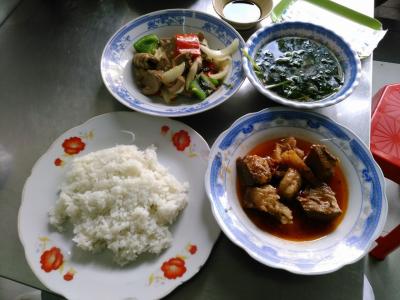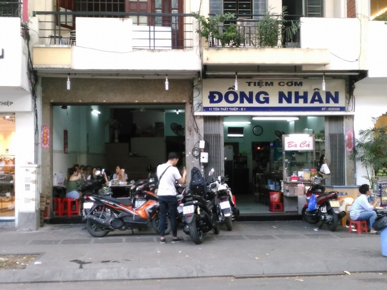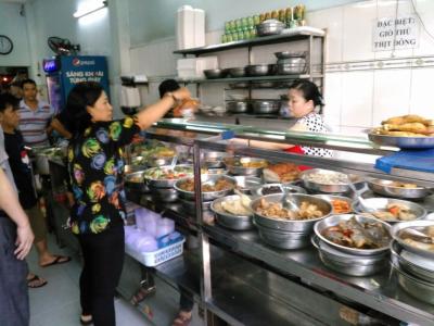 ドンコイ通りの西側、トンタットティエップ通りにあります。おかずを何品か選んで、ご飯とスープが付く感じです。値段を聞かなかったので、適当に二品頼んだら100000ドン(500円)でした。昼時は混雑で入れないこともあるそうです。