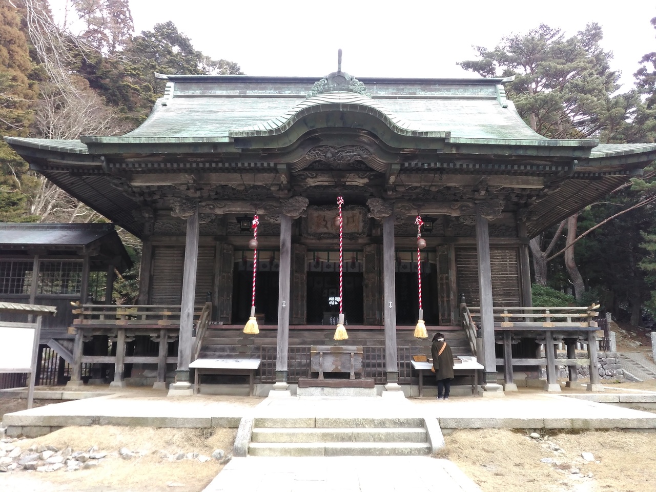 鮎川港から定期船で20分、海上タクシーなら15分で着きます。金華山の港から境内迄は、急な坂を登らなければならないのですが、ワゴン車が迎えに来てくれてました。