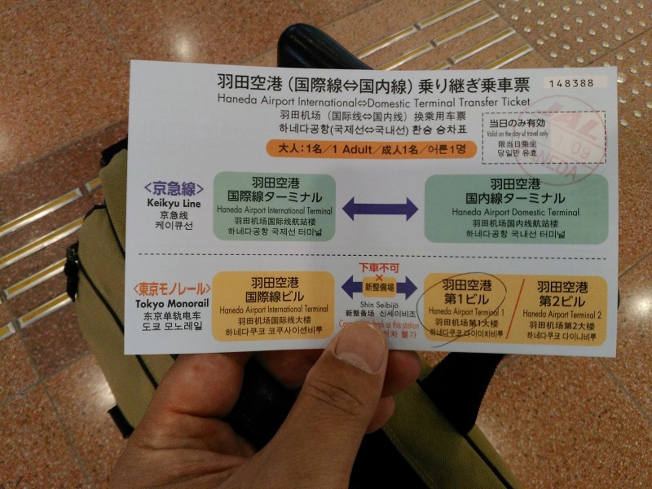 海外からの帰り、羽田空港で国際線から国内線に乗り継ぐ際、海外での飛行機の出発が遅れ、乗り継ぎ時間が短くなってしまいました。どおなることか心配していたら、航空会社からモノレールの乗り継ぎ乗車券をもらいました。