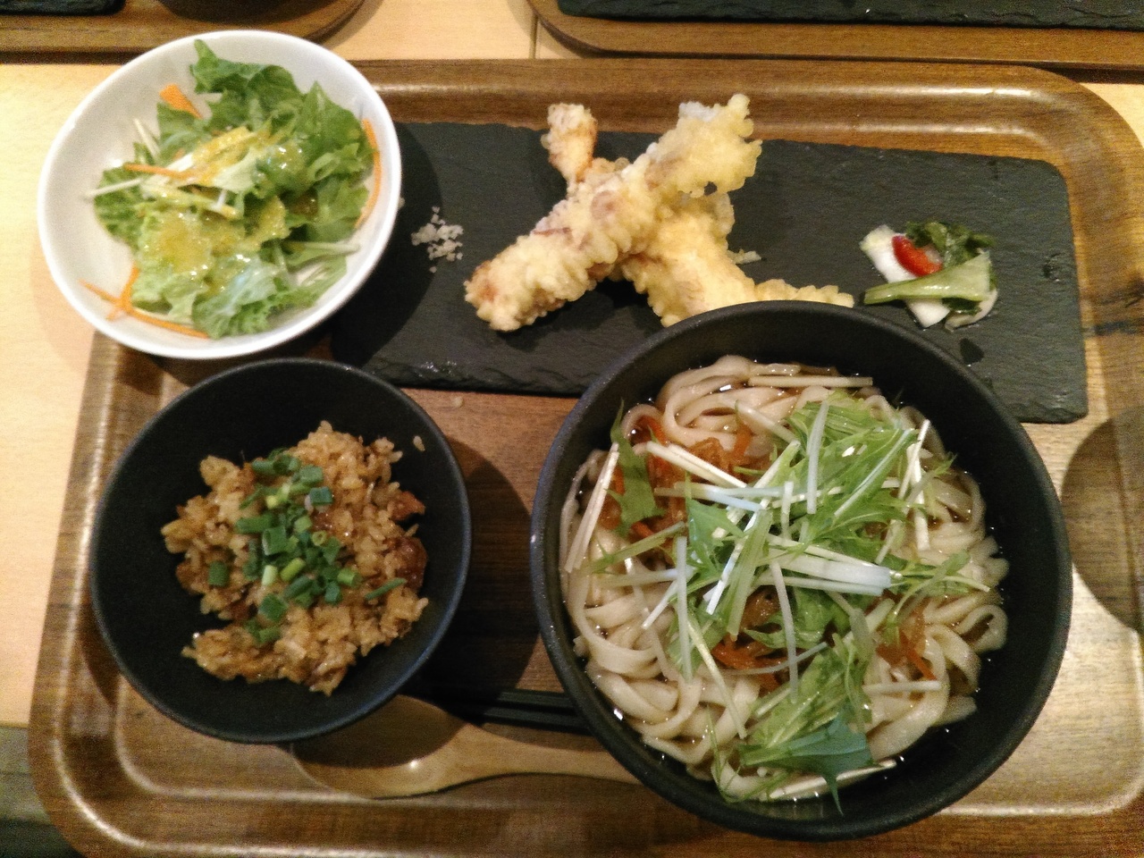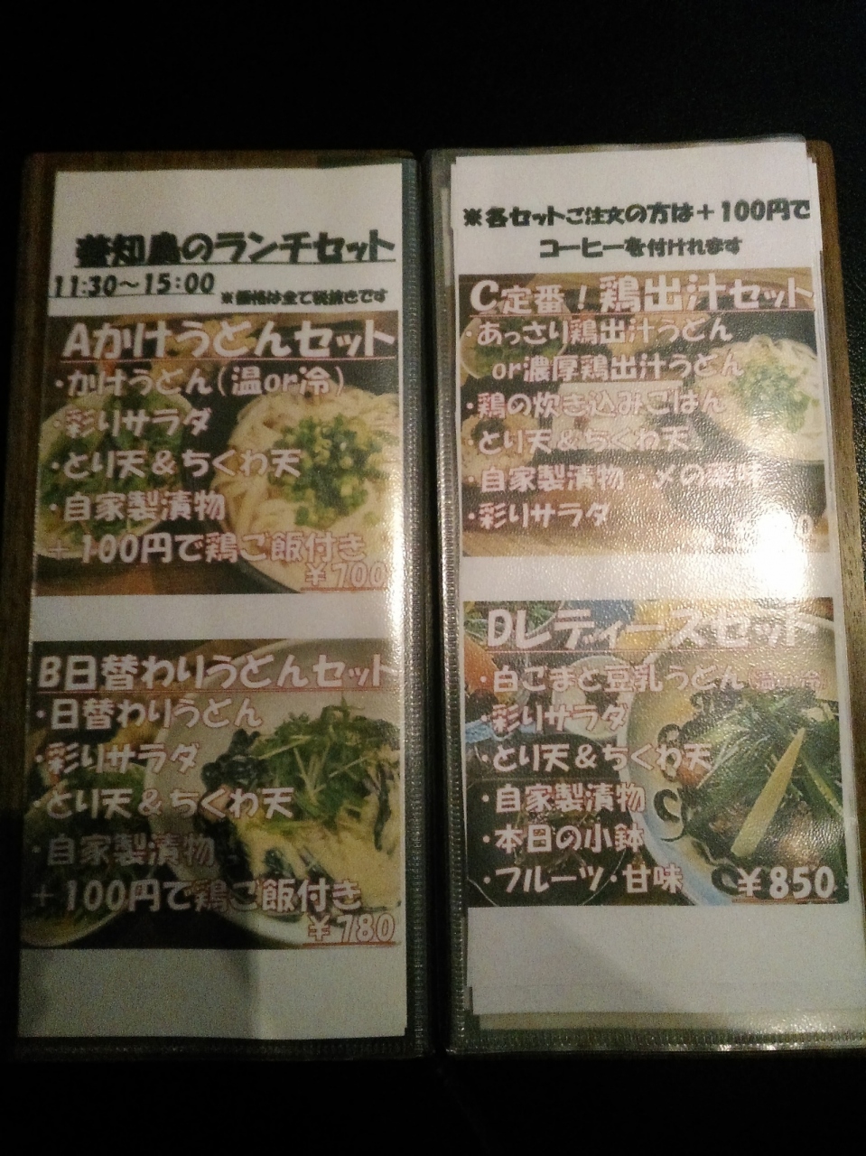 ランチはうどんのセットが700円から900円迄の四種類あります。とり天とちくわ天は、店のイチオシのようで、全部に付いてきます。