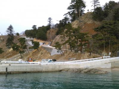 石巻市牡鹿鮎川港から金華山迄の航路です。震災後は、4月から10月がシーズン(人の混み具合で変更)は毎週日曜日に金華山行き定期船(25人乗り)が運行(20分)(2500円)していますが、シーズンオフは海上タクシー(14人乗り)(15分)(3000円)での運行です。