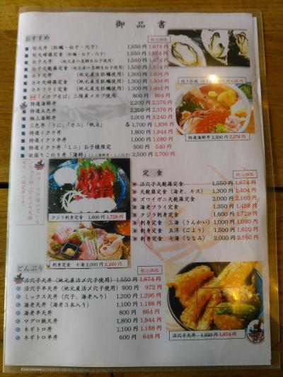 今回は、刺身定食(三海1000円)と天婦羅定食(海老、キス1300円)を頼みました。刺身は一番手頃なものだったので、期待したよりは普通でした。天婦羅は結構、時間がかかり、先にきた刺身定食は食べ終わってしまいました。ネタは季節がらなのか、キスではなく牡蠣でちょっとガッカリでした。- 旅行時期