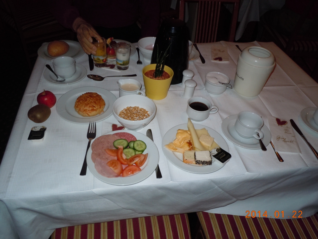 アイゼナッハの郊外に有り美しい眺めを期待していたのですが、ホテルに到着したのが暗くなってから、翌朝の出発も夜明け前(AM8時でもまだ暗い)であったので眺めることはできなかった。ホテル自体は4ツ星ホテルだけあってベッドルームは可成のものであった。浴室トイレシャワールームは大理石調の清潔感のあるものであった。ただベッドはツインで友人と利用したがベッド間隔が近すぎ少々気味悪さを感じた。また枕がふわふわで少々寝づらかった。それ以外は快適に過ごせた。朝食はバイキングで美味しく食べることが出来た。