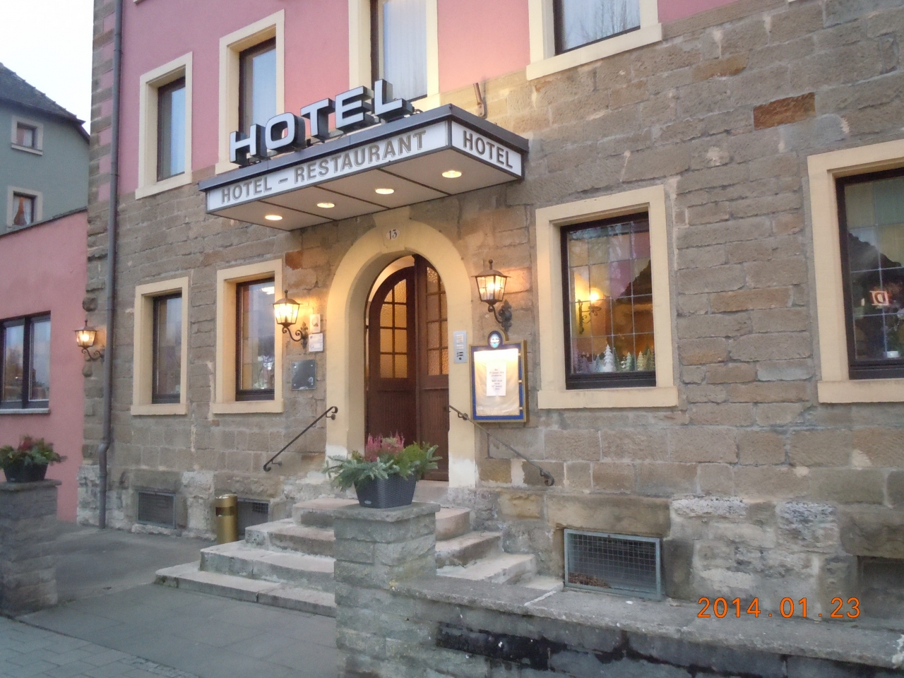ローデンブルク駅と城壁が近くにあり本館と隣に宿泊だけの宿棟を併設するホテル。