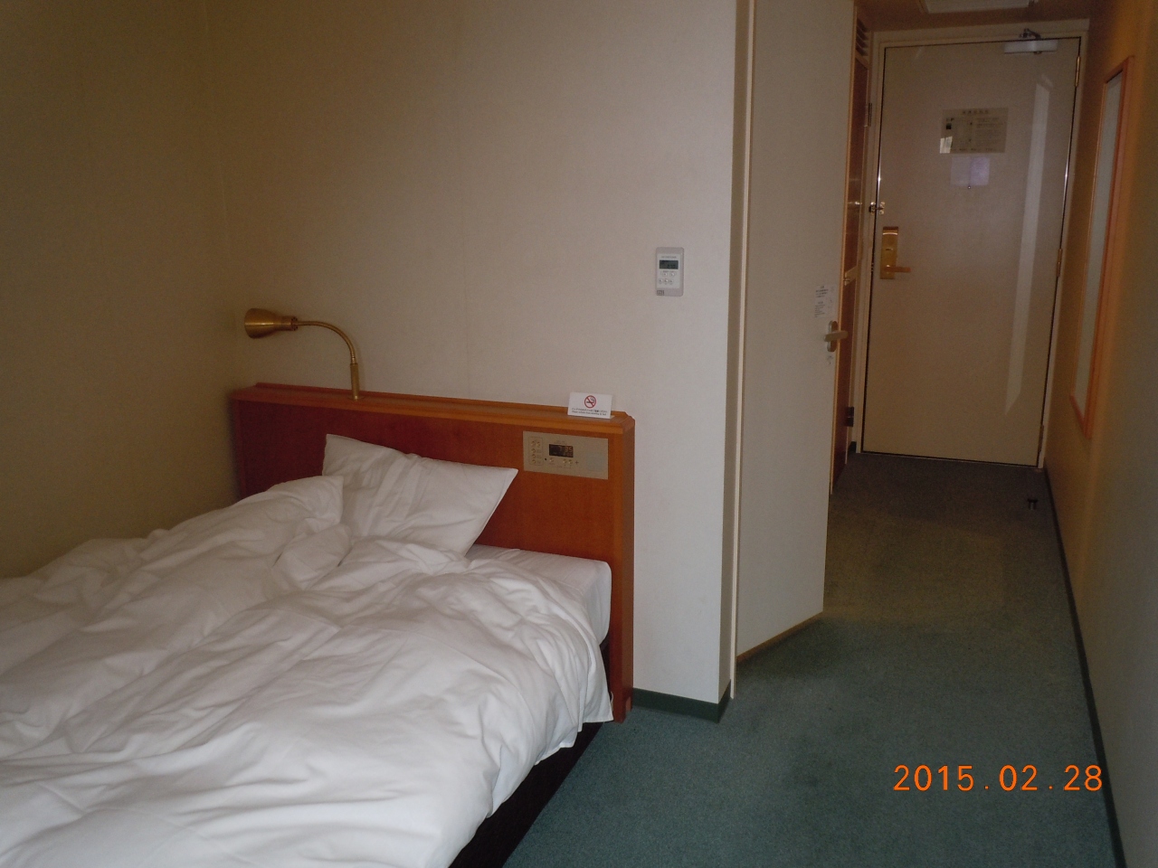 ツアー旅行で宿泊、ツインベッドルームで友人との相部屋。部屋は思ったより広く綺麗に掃除が行き届いていた。ベッドの間隔も適当に空いており、互いの動作寝息等に邪魔されることなく休むことができた。浴室シャワー兼トイレも綺麗で深いバスタブの上をスライド式の間仕切り戸で仕切られシャワーが飛び散る心配がなかった。朝食はバイキング形式、メニューも豊富で日本人の口に合うもので良かった。出発当日は大雪で外は白一色白銀の世界だった。