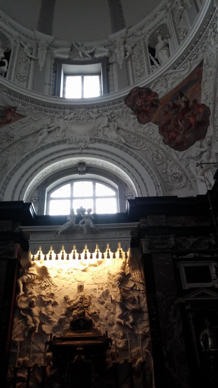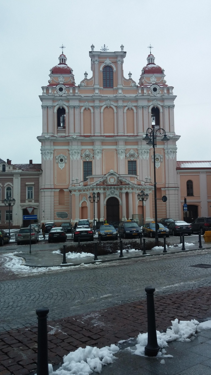 城から降りた後、教会に訪れました。交通信号の隣にあり、雪と一緒に綺麗で、白い壁の建物にする。中央に大きな十字架を持つ像の特徴があります。教会の内部には詳細な建築の形を見るのが嬉しいです。無料で入られます。