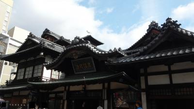 商店街は食事とお土産を買う人がいっぱいです。何枚の伝統的な灯明を入り口の上に飾られ、近くの列車のモデル、温泉の本館と一緒に歴史的雰囲気を豊かになりました。街は長くないが、松山に一番の見ごろと思います。