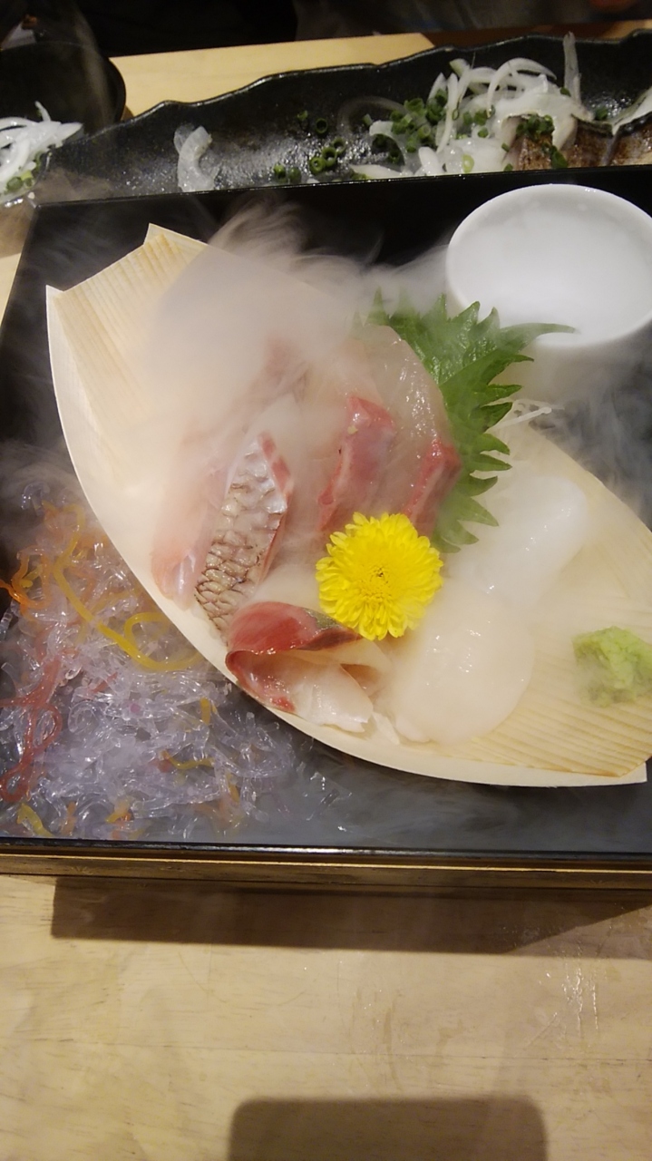 インスタの効果を意識しているんでしょうね。炙りしめさばとか、お刺身玉手箱とか演出効果あるお料理がありました。