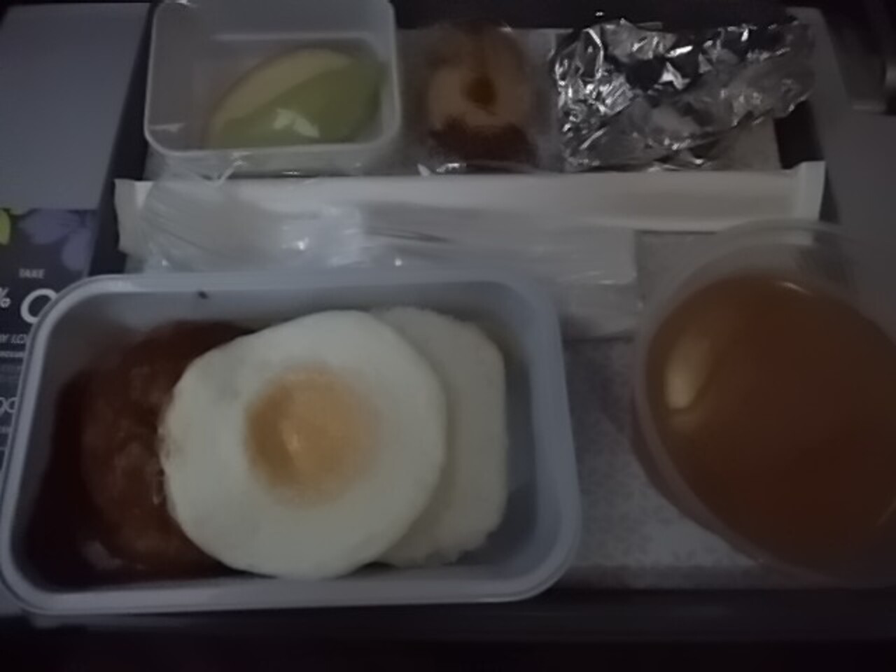 従い満腹感のまま搭乗し、軽食を食べて朝ごはんが出るので、足ります。ただ、和食は若干少ないかな。。。