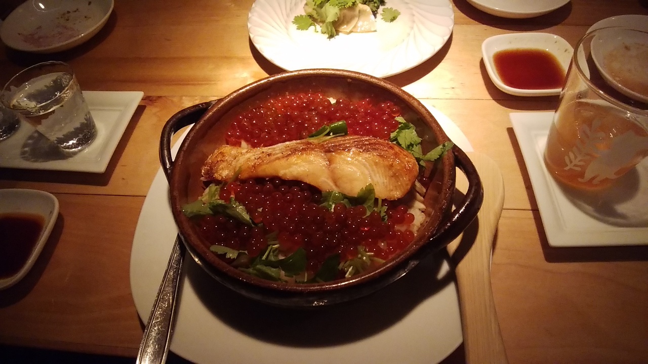 また、鮭とイクラの炊き込みご飯は、鮭の親子丼のようで、美味です。利き酒もなかなか楽しめます。