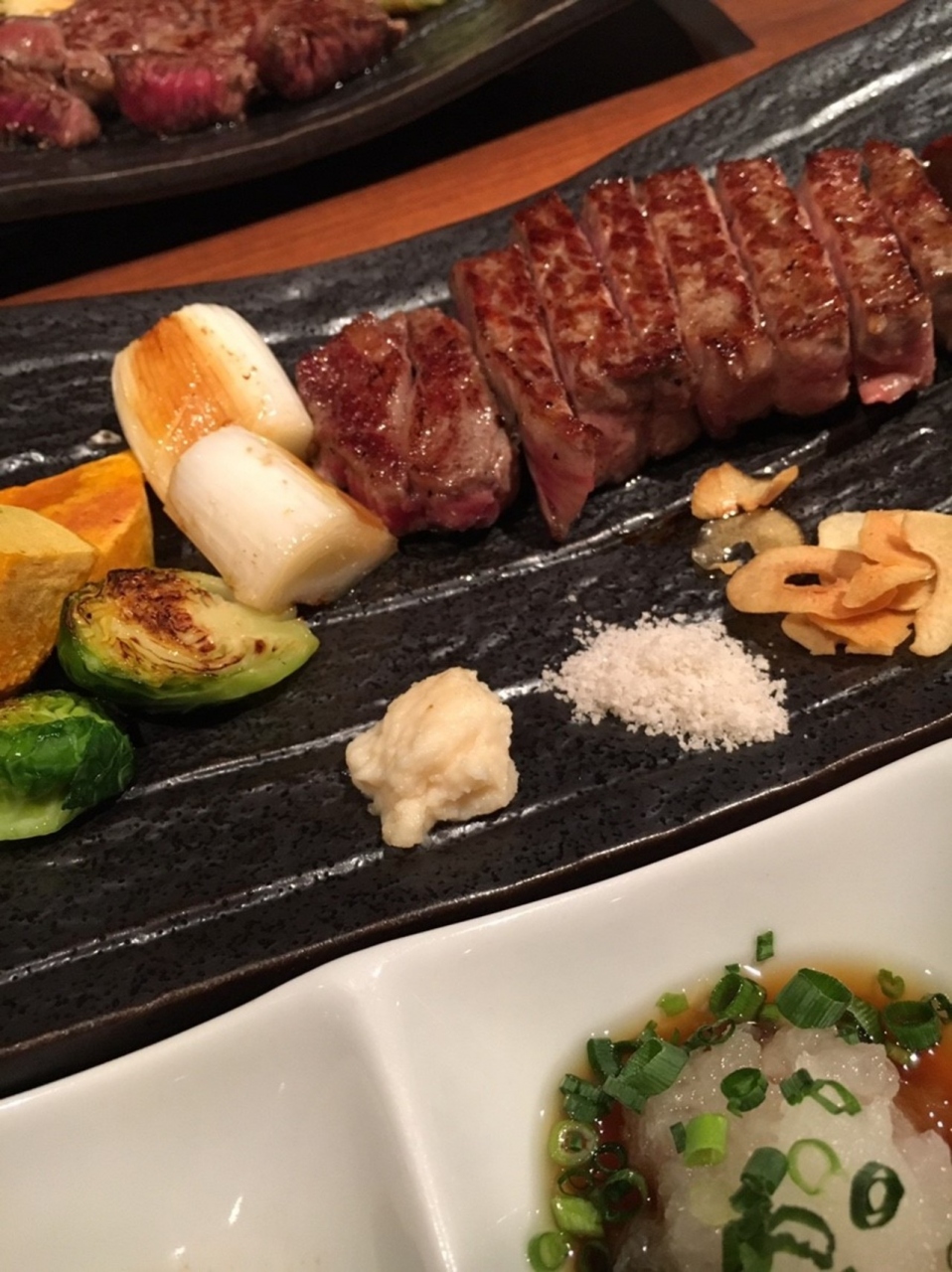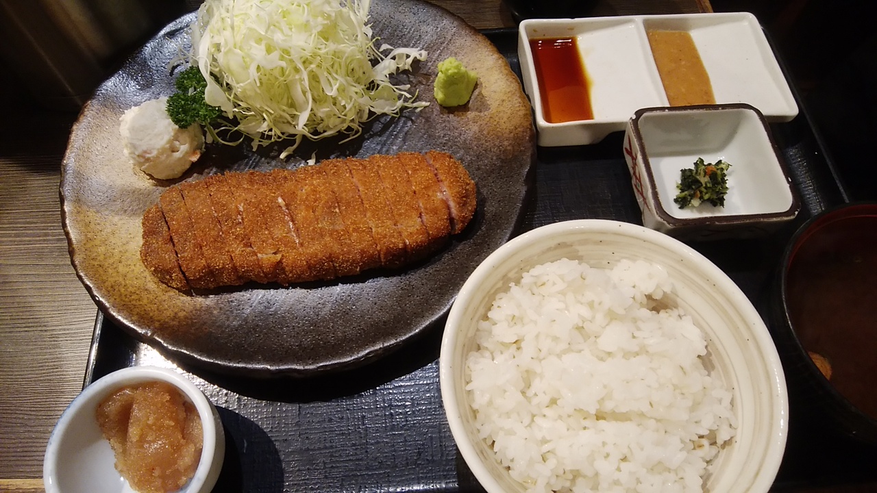 石焼きのセットで半調理された牛カツを焼きながら食べるという、楽しさがある食事ですが、それだけではなく、お肉も柔らかく手を抜いていません。また、タレも3種類あります。お肉のサイズは2種類ありますが、少ない方で十分だと思うくらいに、しっかり食べ応えあります。メニューは英語メニューがあり、確かに外国人が多く、私の周りは皆外国人でした。
