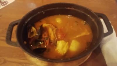 お通しが、何種類の中から選ぶ仕組みです。でも、妥協なく美味しかった。それと、海鮮のブイヨンベーススープ等を頼みましたが、これも美味しかったです。ダッチオーブンとか使ったりして、洒落てます。