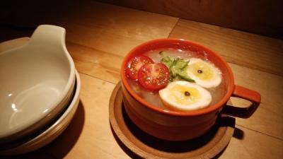 ヱビスビールに合う食事として表彰されたメニューをいただきました。たまごと大根と冬瓜と厚切りの豚肉をじっくり煮込んだスープに、ミニトマトとキュウリを乗せたお料理は、とても胃に優しくて、ほどよい塩加減がヱビスビールを美味しく飲めて、看板の通りでした。