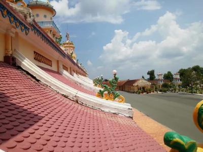 約2時間余りでベトナム、タイニンにあるカオダイ教総本山へ到着です。礼拝...