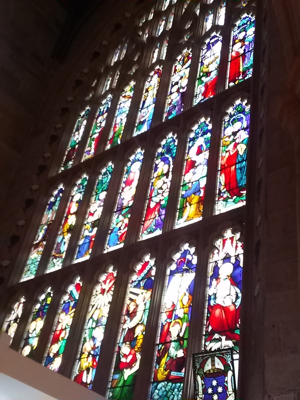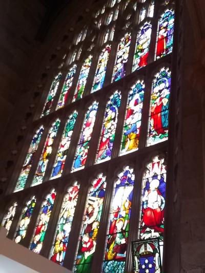ハイドパークの中の歩道を州立図書館へ向けて歩くと右側にドーンと迫力ある建物が見えてくる。大きすぎて広すぎて入口が分からなかったが、案内を見ていくとエントランスに入れる。中の様子は想像通りの広さと正面、両面のステンドグラスが鮮やかな内部です。