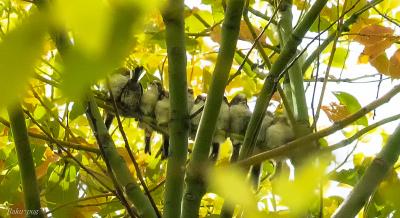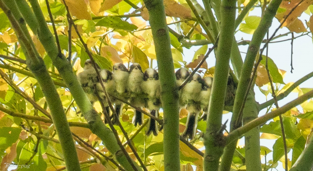 偶然 エナガの 幼鳥が 枝に 並んで 止まっていて