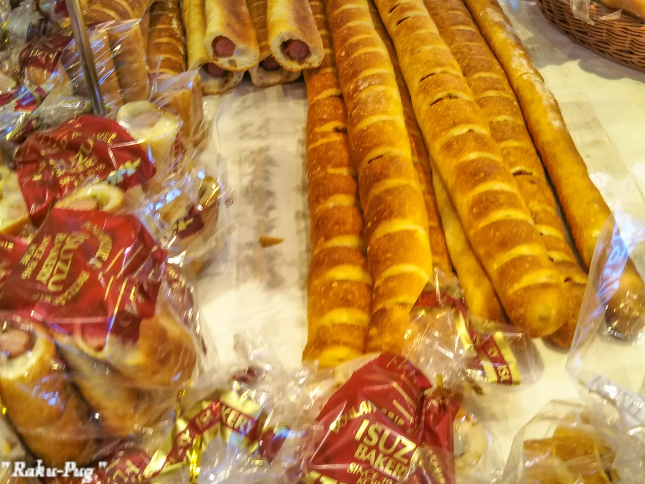 長ーい ソーセージの入ったパン・ ローストビーフのサンドイッチ