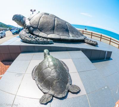 ブロンズの大きな亀の親子があり、浜辺にくるのかなと