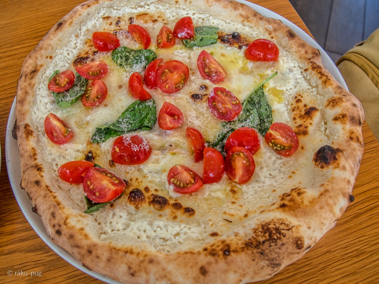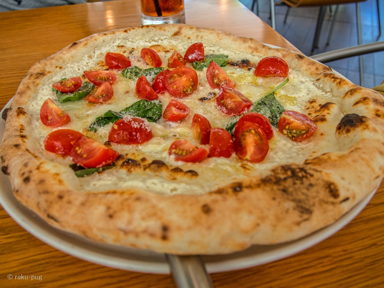 席につけました。釜で焼き上げる ナポリ ピザでした。