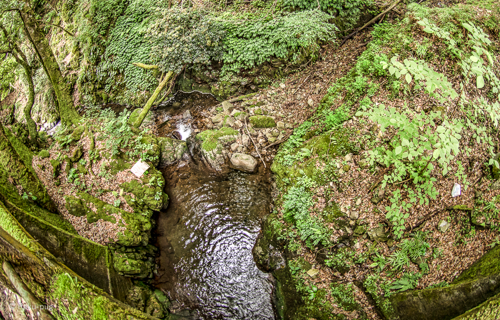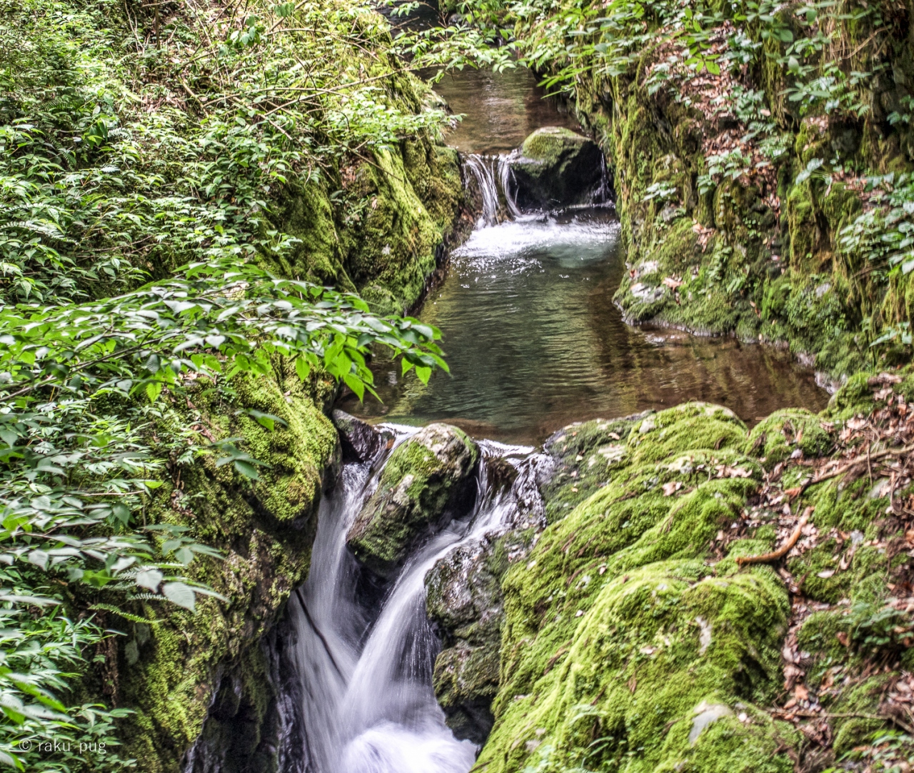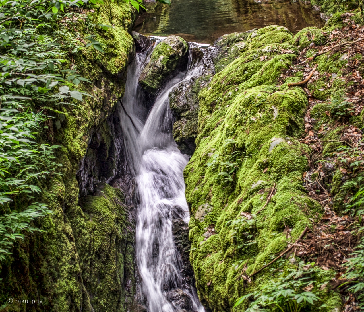 苔むした 岩と 滝が流れていて 爽やかです。