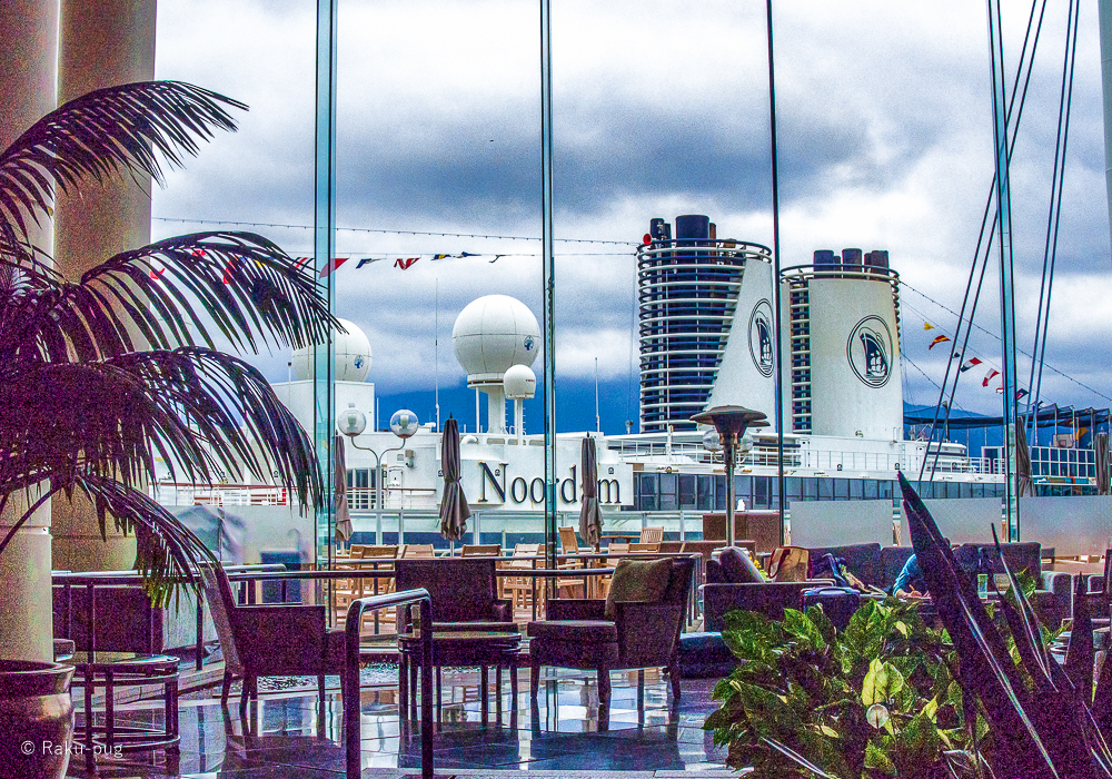 窓の外に 広がる 海 クルーズ船 入港が 見れ 素晴らしかった!!