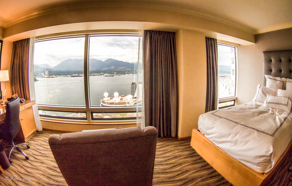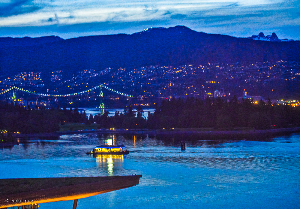 楽です。窓からは ライオンズゲート・ブリッジが見えて クルーズ船が
