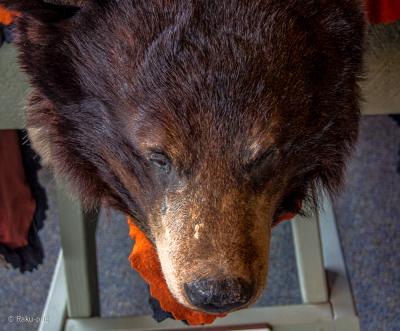 クマのはく製や ビジターセンターに設置された 双眼鏡で