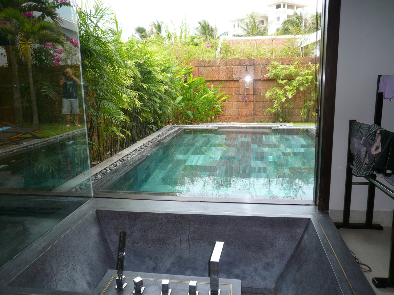 - お庭を見ながらバスタイム、またプールに入り泳げる。最高でした。