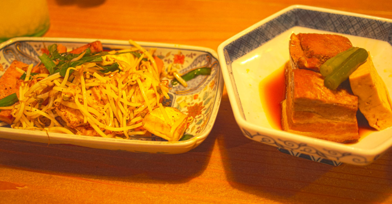アグー豚の塩焼き、豚の角煮、トーフチャンプルー。海ブドウの海鮮サラダ、チャーハン、他色々です。1月で寒かったので