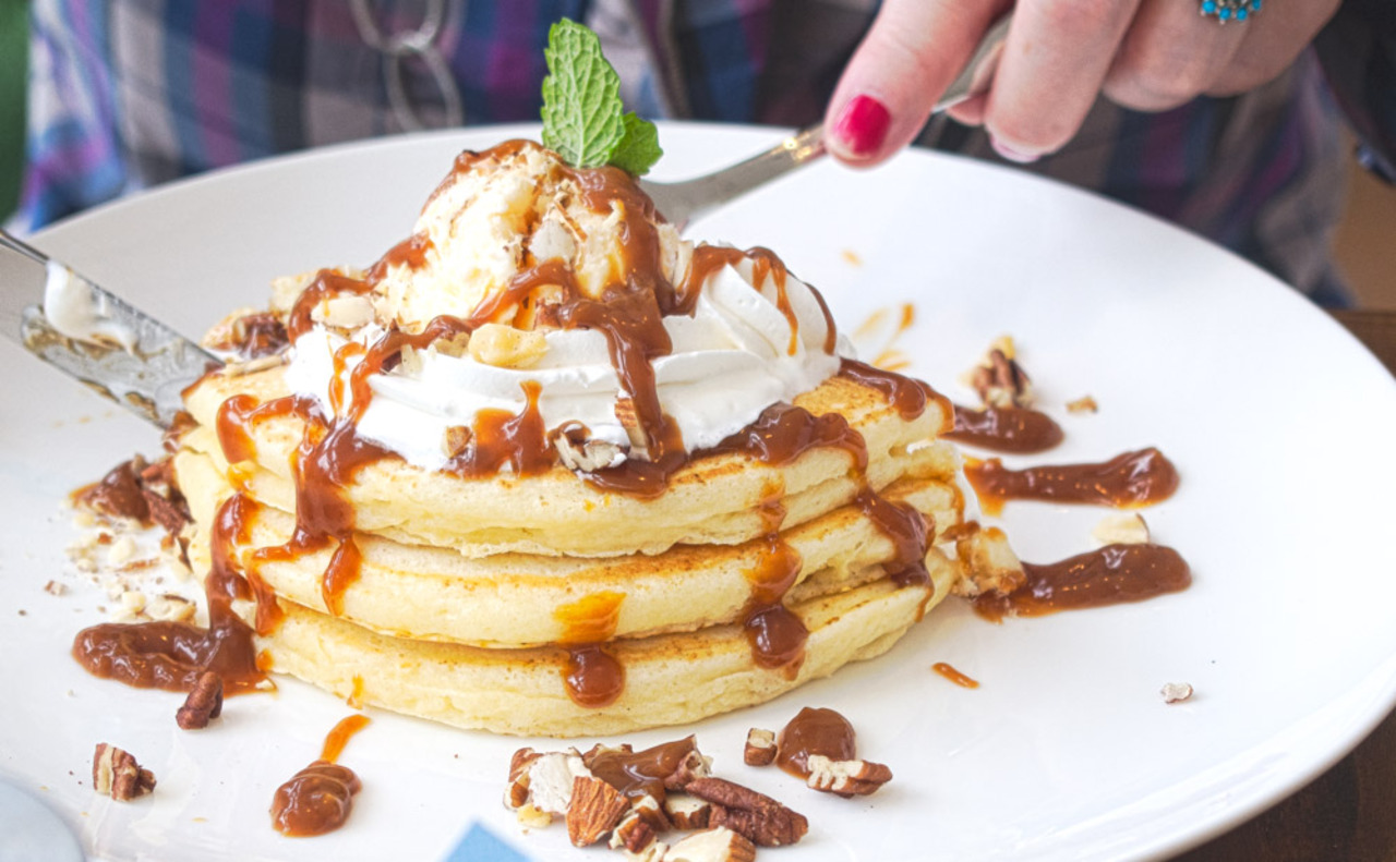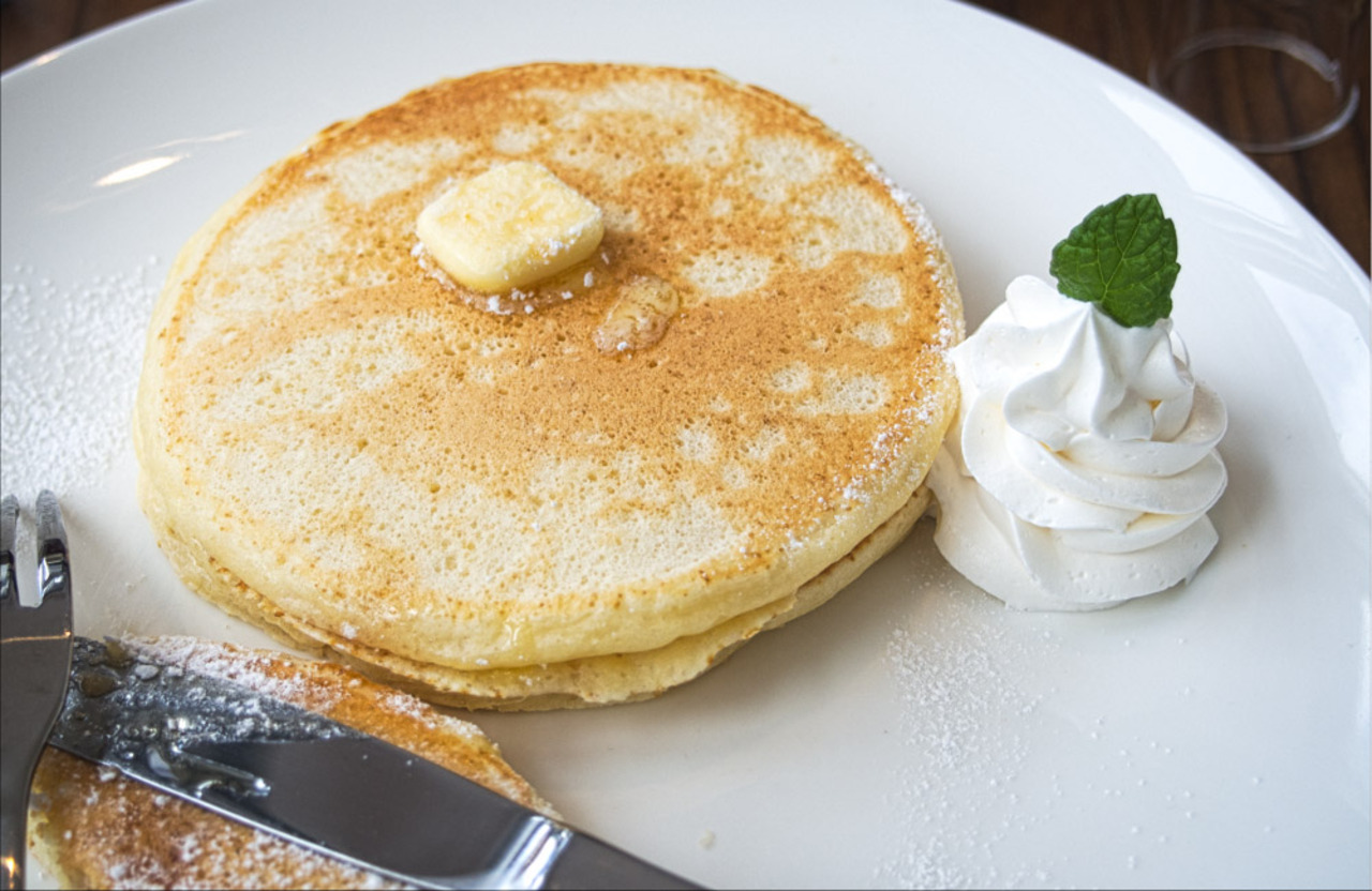 私のキャラメルパンケーキは少し甘く、プレーンパンケーキのほうが良かったかも!プレーンは、550円、キャラメルは780円でした。